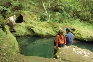 最大の見どころは、迫力満点の「三段滝」です。各段にアクセス可能で、下から見上げる躍動感と、滝から流れ落ちる水の透明感に圧倒されます。さらに急な斜面を登りきった「滝上(たきうえ)」は、標高約250mの特等席。眼下には緑深いジャングルと、その先にサンゴ礁の海が広がる「西表島随一のパノラマ」が楽しめます。ここで飲む一杯の飲み物は、忘れられない最高の思い出になるはずです。