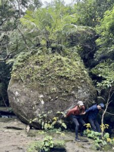 ユツンの滝へと続く道は、まさに西表島の自然そのもの。道中には苔むした岩々や、モダマの巨大なツル、珍しい亜熱帯植物が自生しており、まるで映画の世界に迷い込んだような神秘的な雰囲気が漂います。せせらぎを聞きながら進むトレッキングは、五感を刺激する特別な体験です。整備されすぎていない、自然本来の力強さを感じることができます。