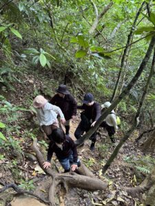 カヤックを降りてから滝壺を目指すトレッキング区間には、木の根が入り組んだ場所や滑りやすい岩場が含まれます。普段、平坦な道以外を歩く機会が少ない方にとっては、数十分の歩行でも慎重な足運びが求められます。KUINA&KAYAK西表では、個々の歩行ペースを尊重し、急かすことなく安全を最優先した誘導を行いますが、身体的な不安がある場合は、この「歩行」の有無を判断基準にしてください。