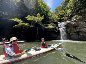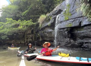 知る人ぞ知るこの場所は、案内できるガイドも多くありません。カヤックに乗ったまま滝の真下まで漕ぎ進み、全身で飛沫を浴びる「滝行」は、ここでしか味わえない体験です。都会の喧騒を忘れ、水の匂いや風の音に身を委ねる。そんな「自然の一部になる」贅沢を、ゆったりとお楽しみください。 -